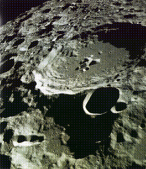 Uma grande cratera na Lua.