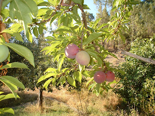 Ameixas a amadurecer, vermelhas (acima) e amarelas (abaixo):