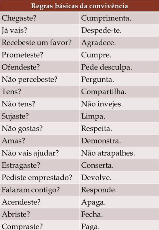 Estas regras nem necessitam de comentários, pois são tão evidentes. Eis algumas: